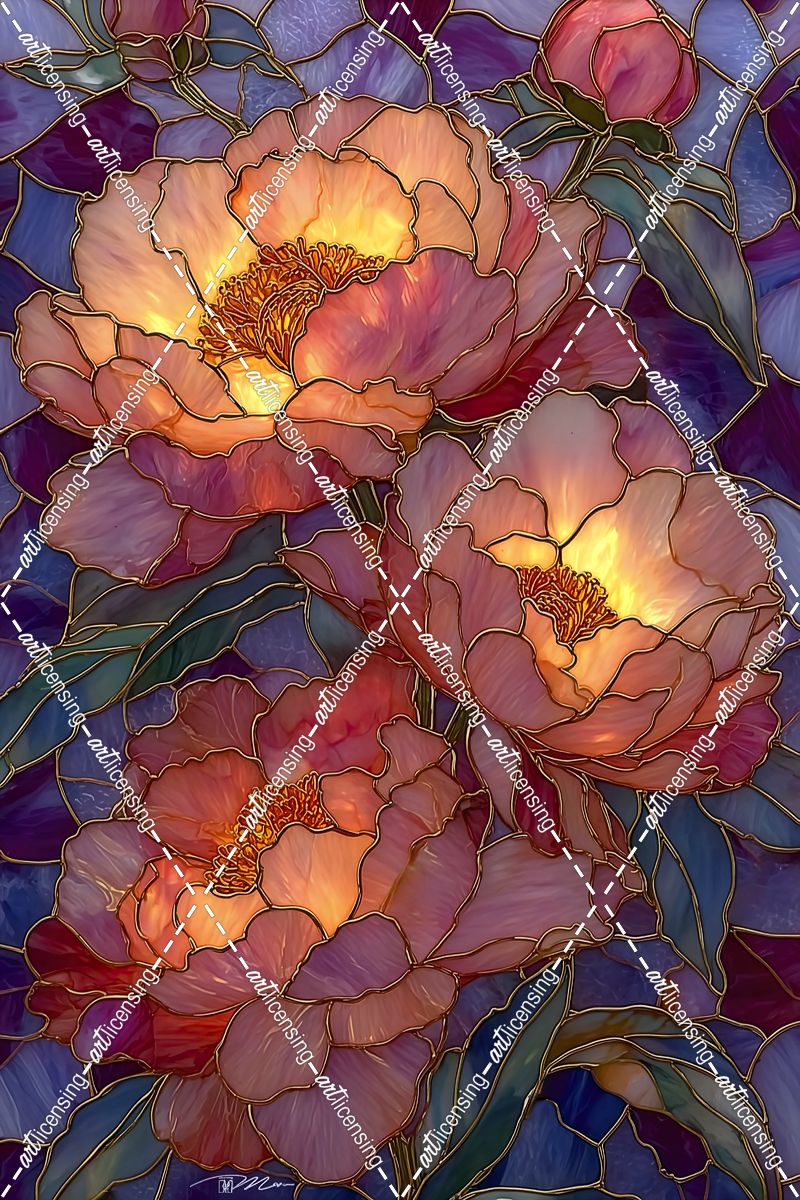 Stained Glass With Pink Peonies