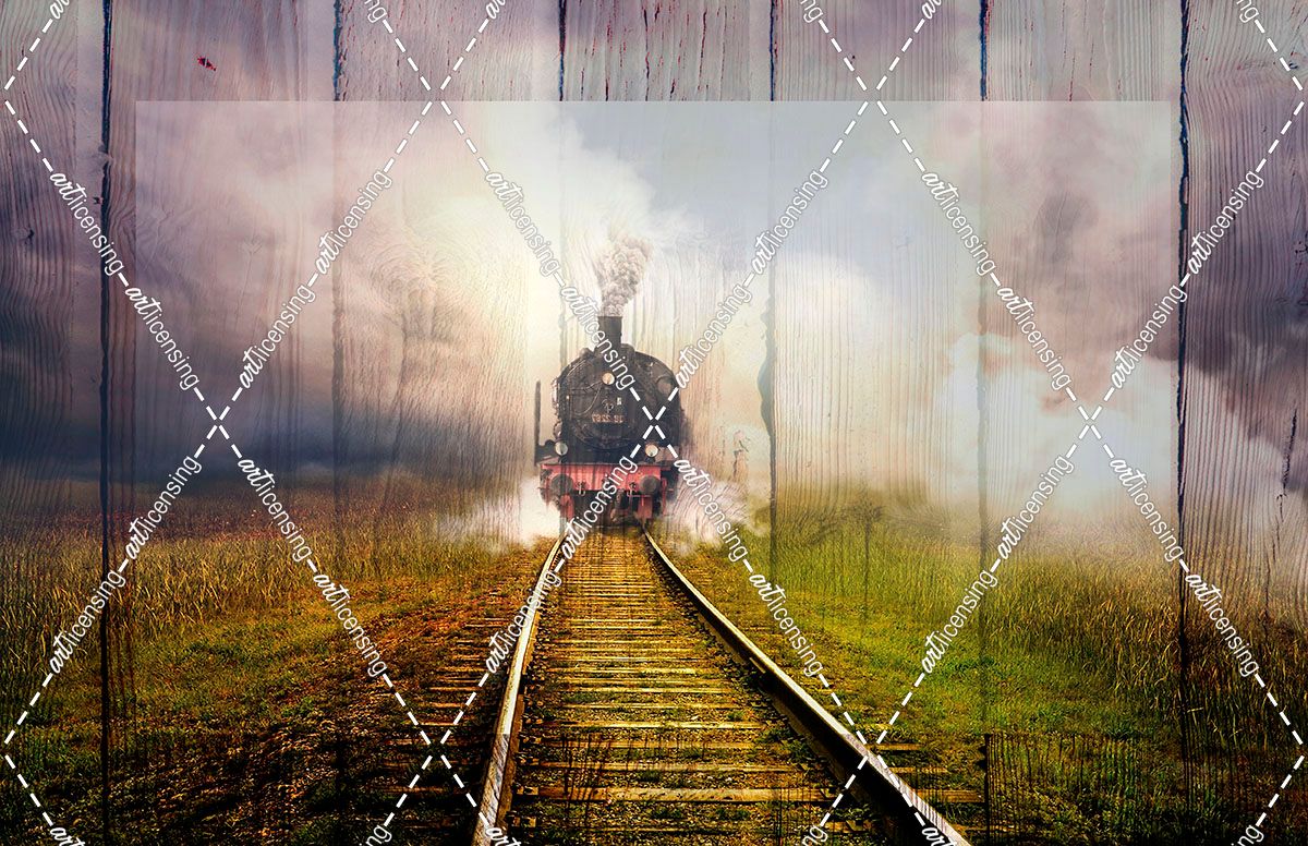 Steaming down the Tracks Wood Border
