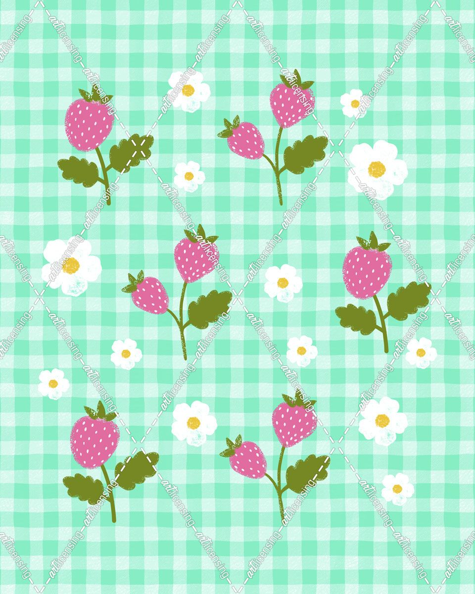 Strawberry On Blue Gingham