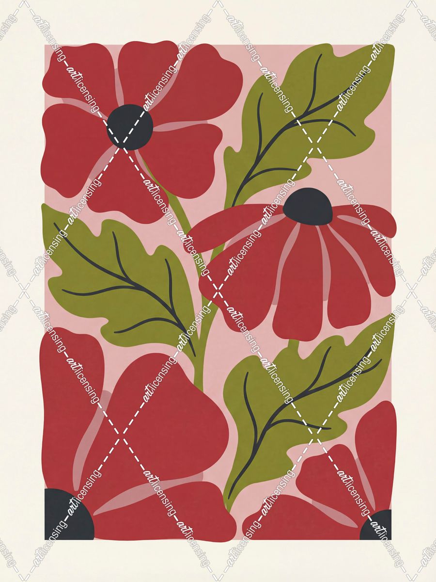 Stylized Red Flowers No 1