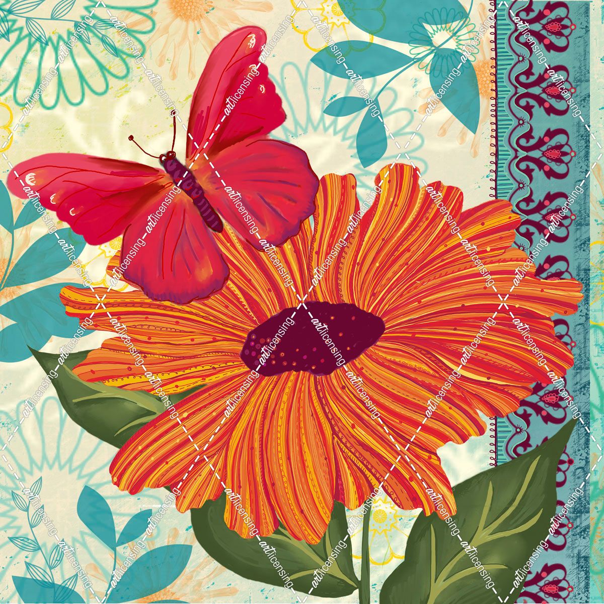 Sunflower And Red Butterfly