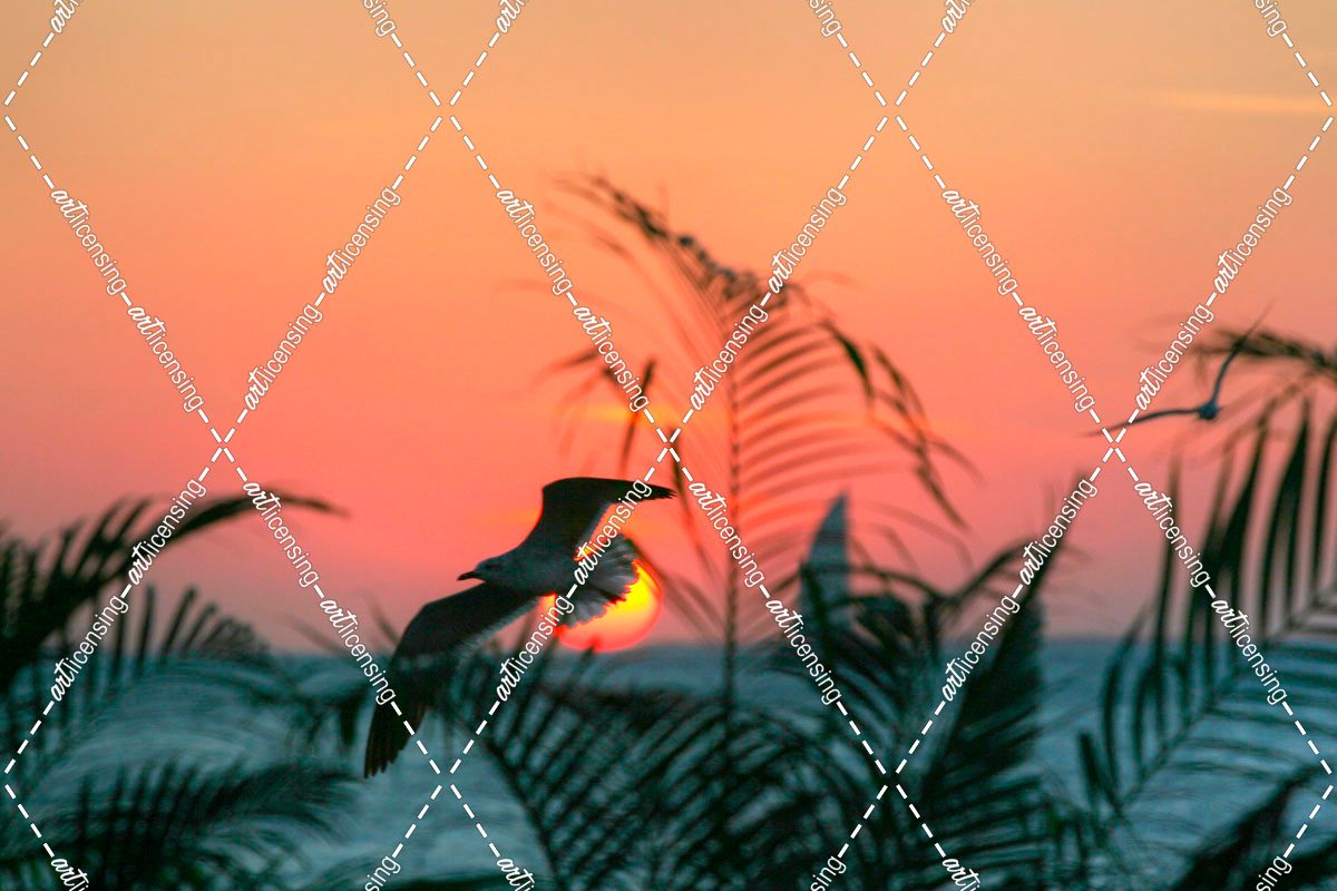 Sunset Gull and Fronds