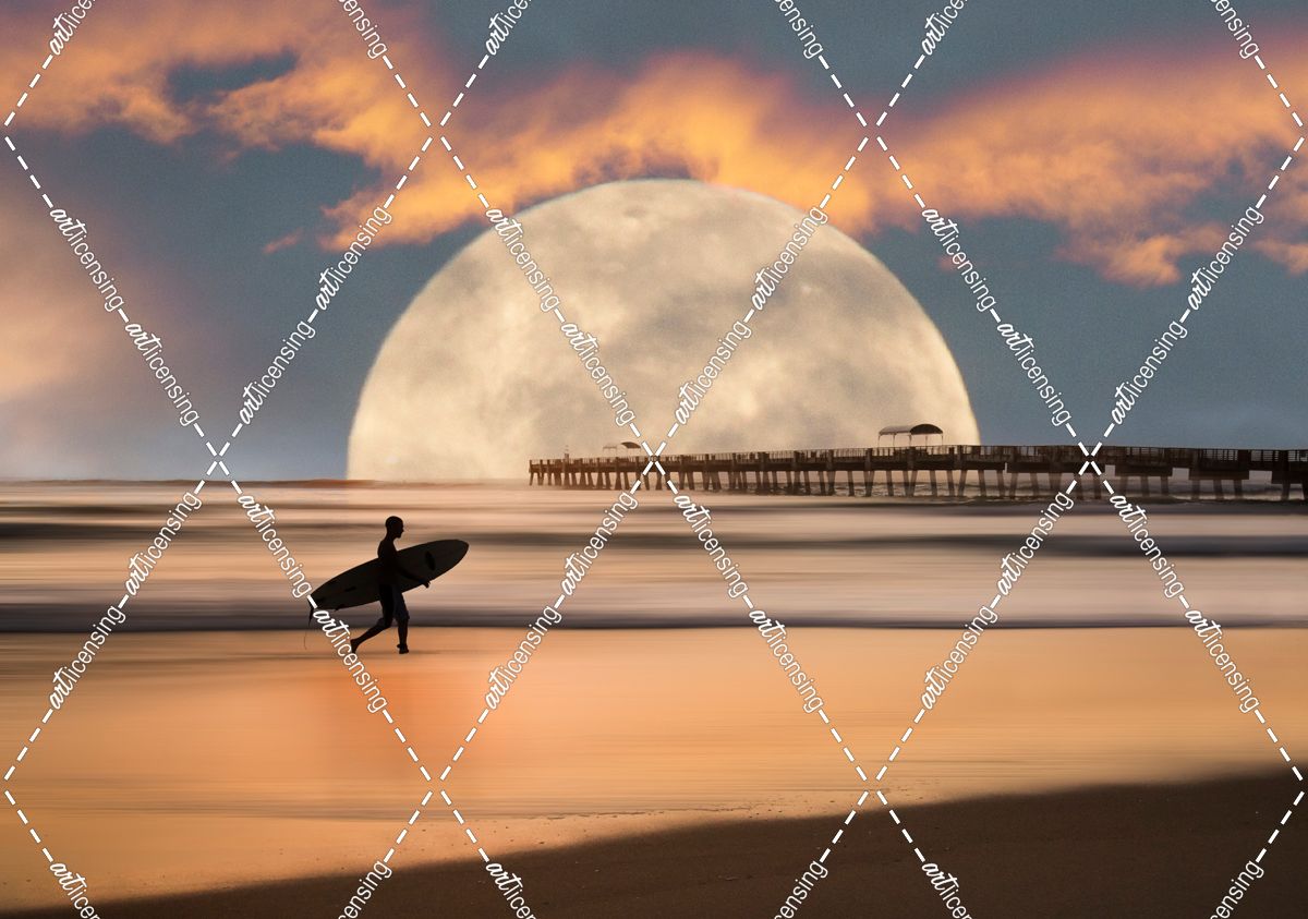 Surfer Under The Full Moon