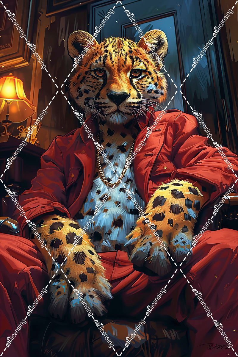 Teenage Leopard In Red