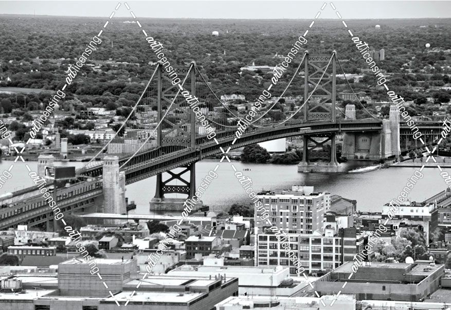 The Benjamin Franklin Bridge (aerial) (b/w)