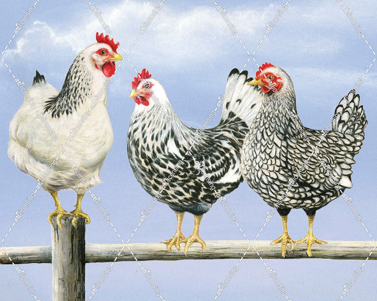 Three Black & White Hens