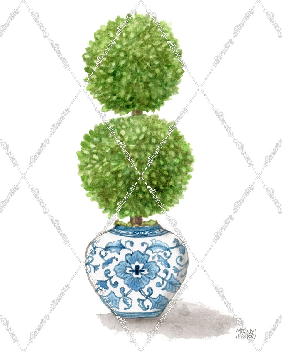 Topiary Double Tree In Blue Chinoiserie Vase