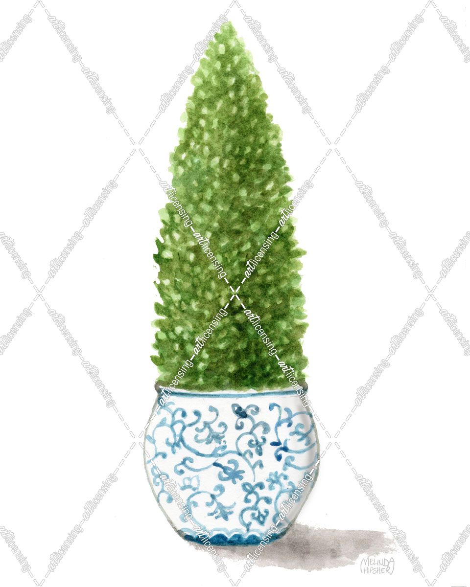 Topiary Pyramid In Blue Chinoiserie Vase