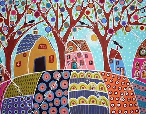 Trees Houses Barn & Birds