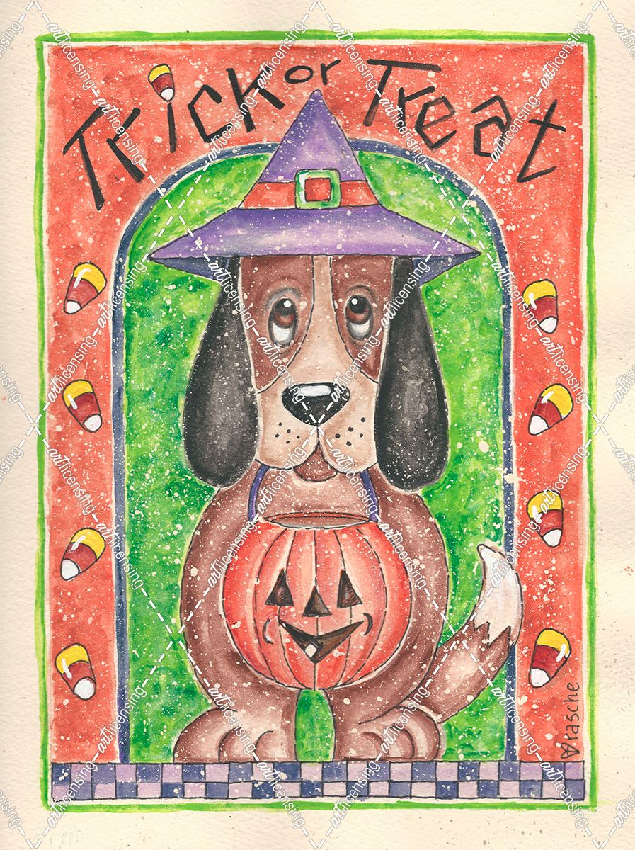 Trick or Treat Dog holding Pumpkin