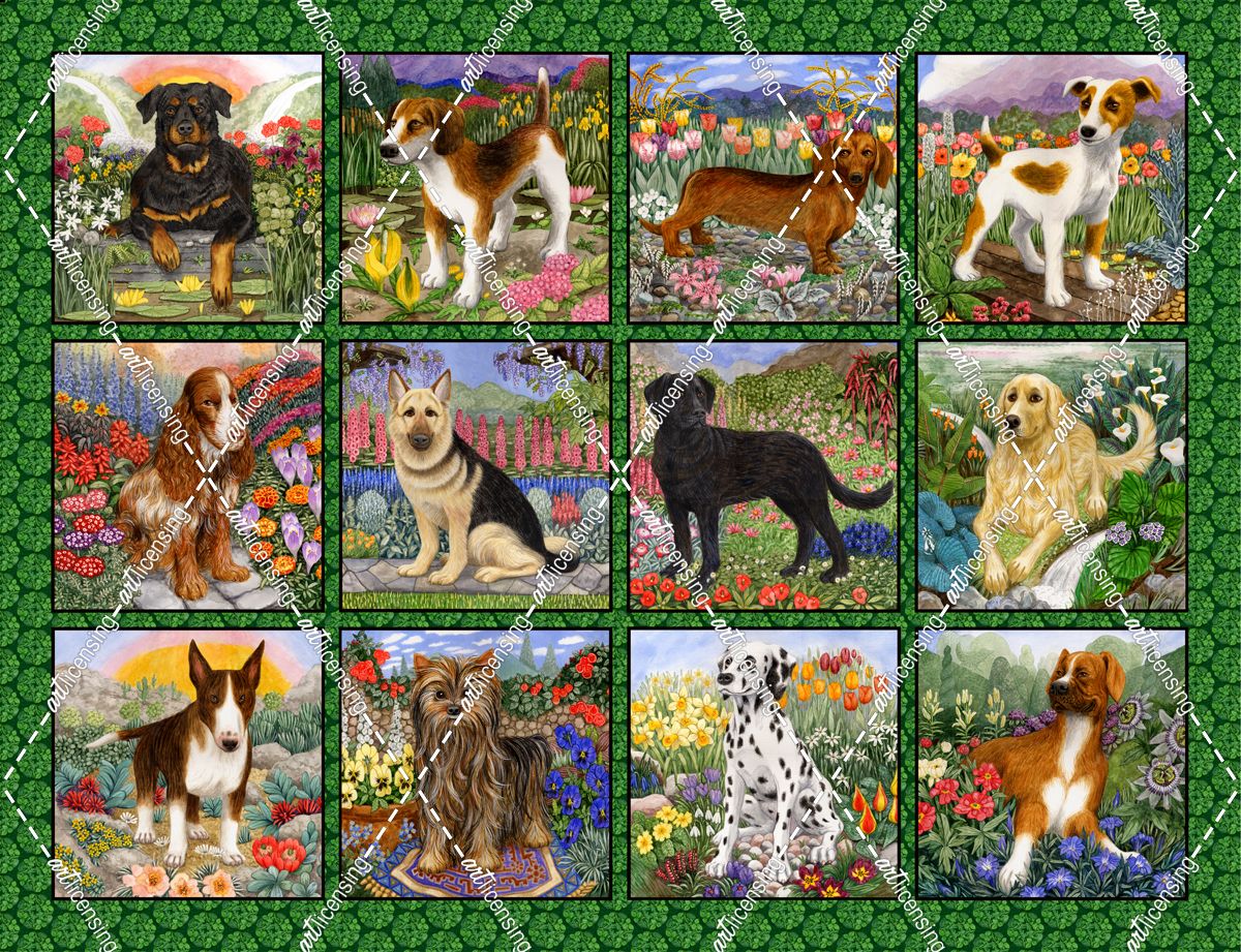 Twelve Dogs On Black & Green