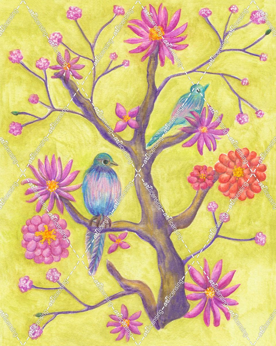 Two Birds in a Tree on Green