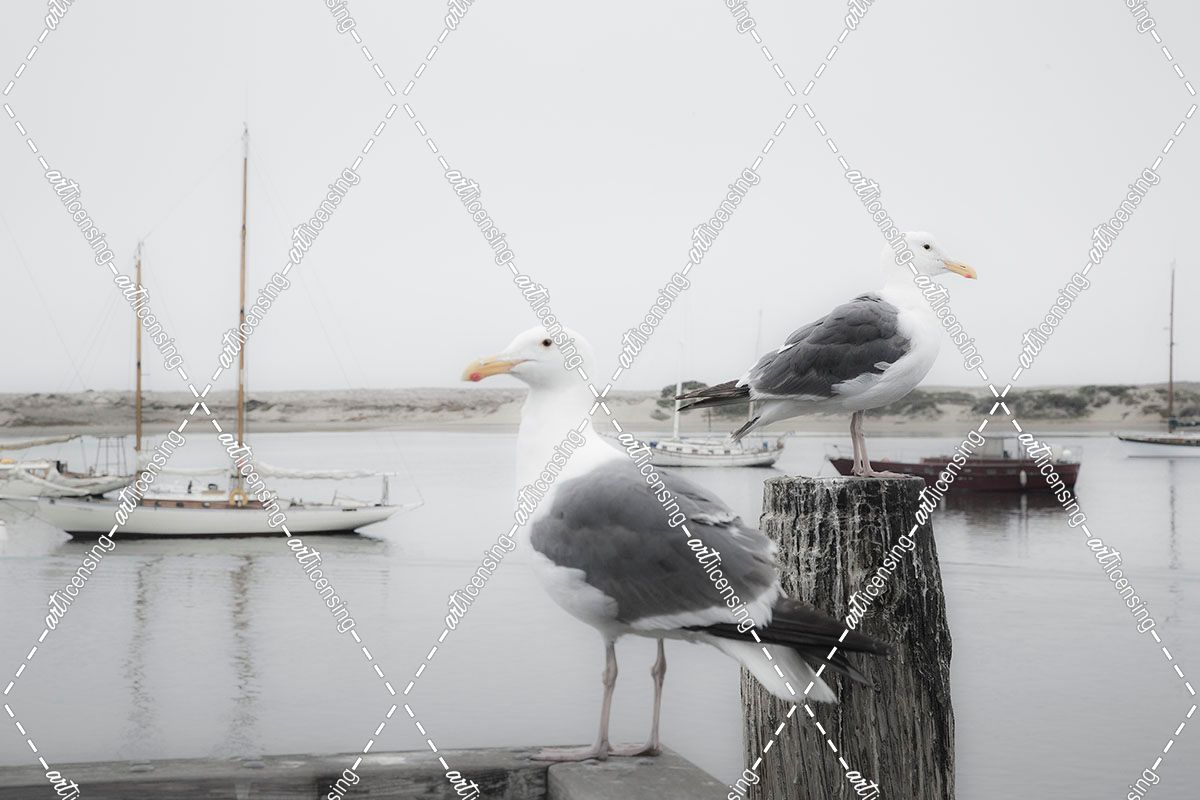 Two Seagulls & Boats