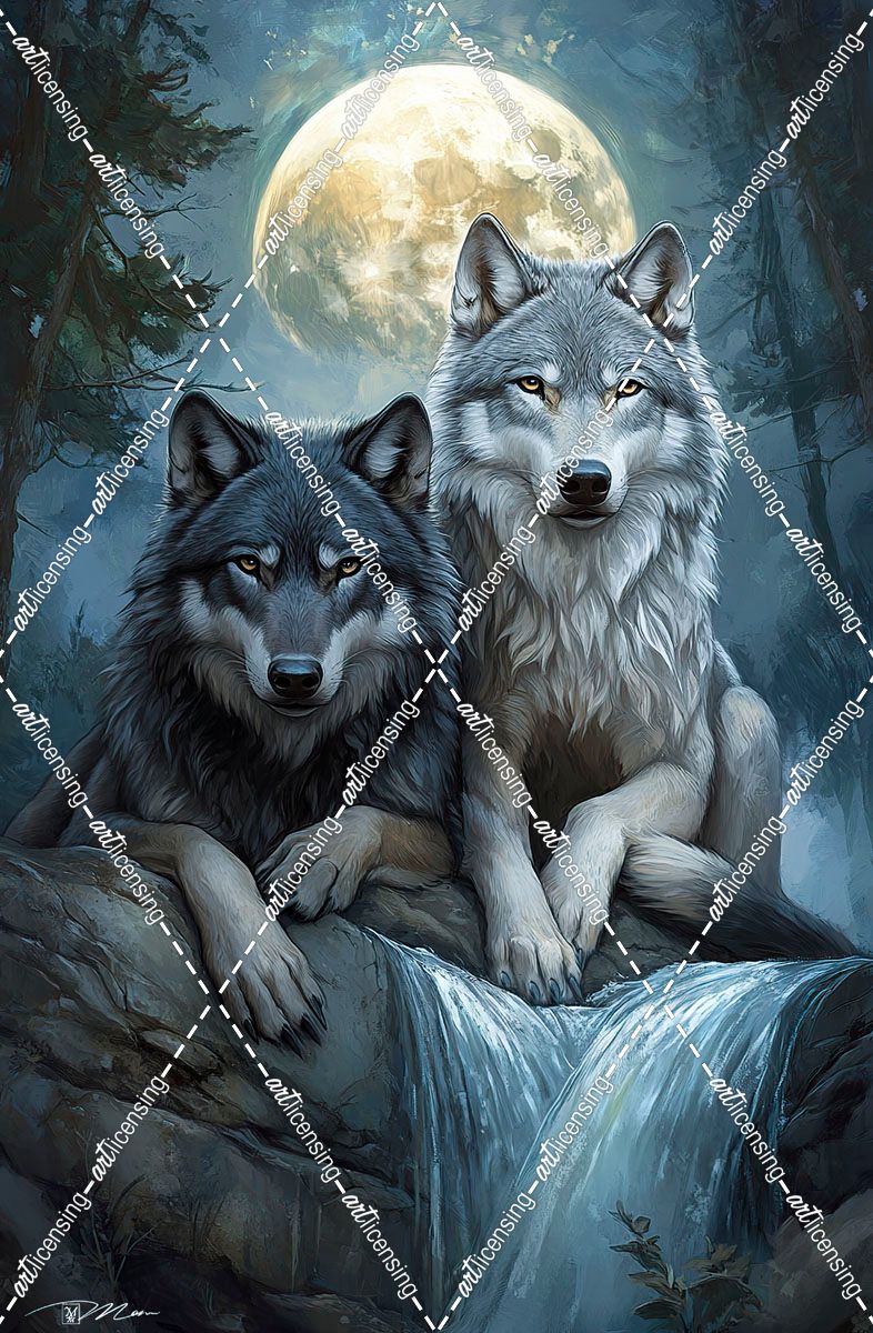 Two Wolves In The Moonlight In The Forest (1)