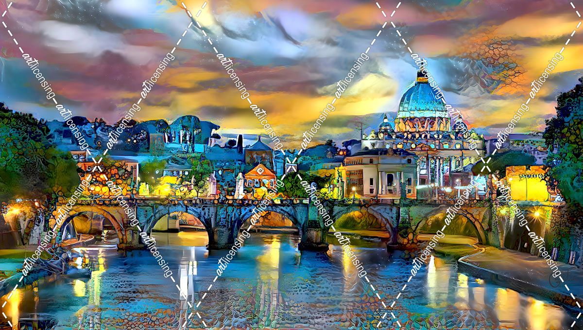 Vatican City Saint Peter Basilica and bridge by night