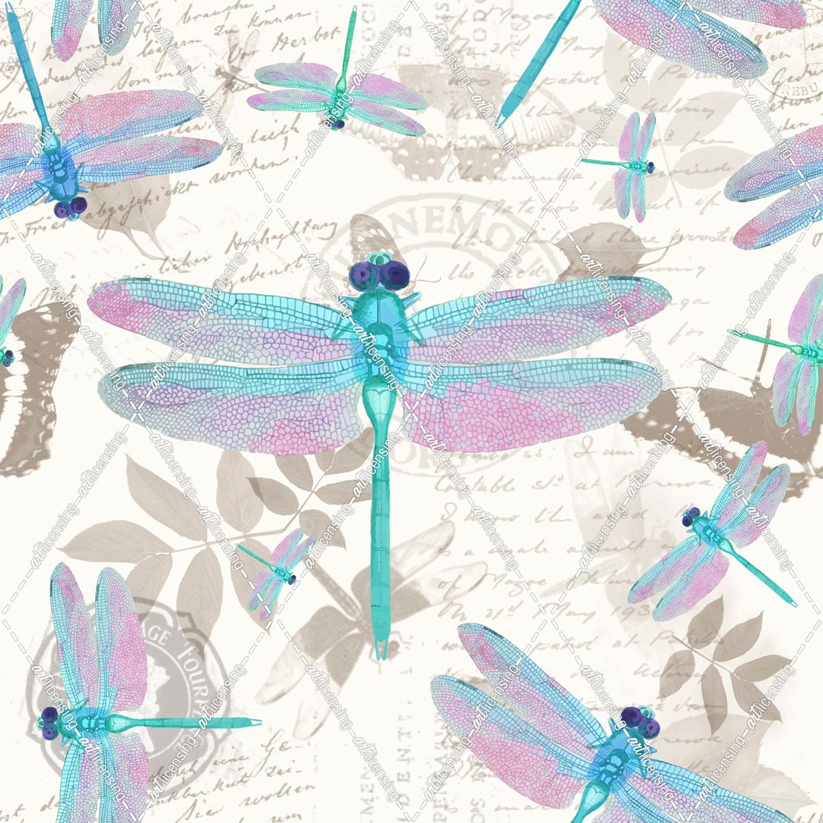 Vintage Botanicals Dragonfly Pattern Aqua