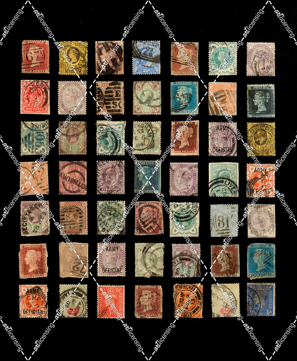 Vintage Stamps in Rows on Black