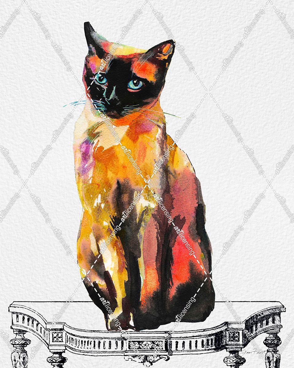Watercolor Cat On Table C
