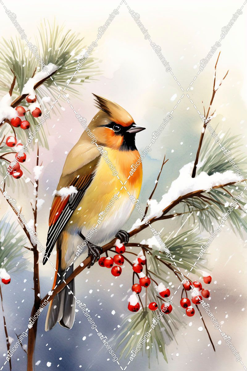Watercolor Christmas Cedar Waxwing9