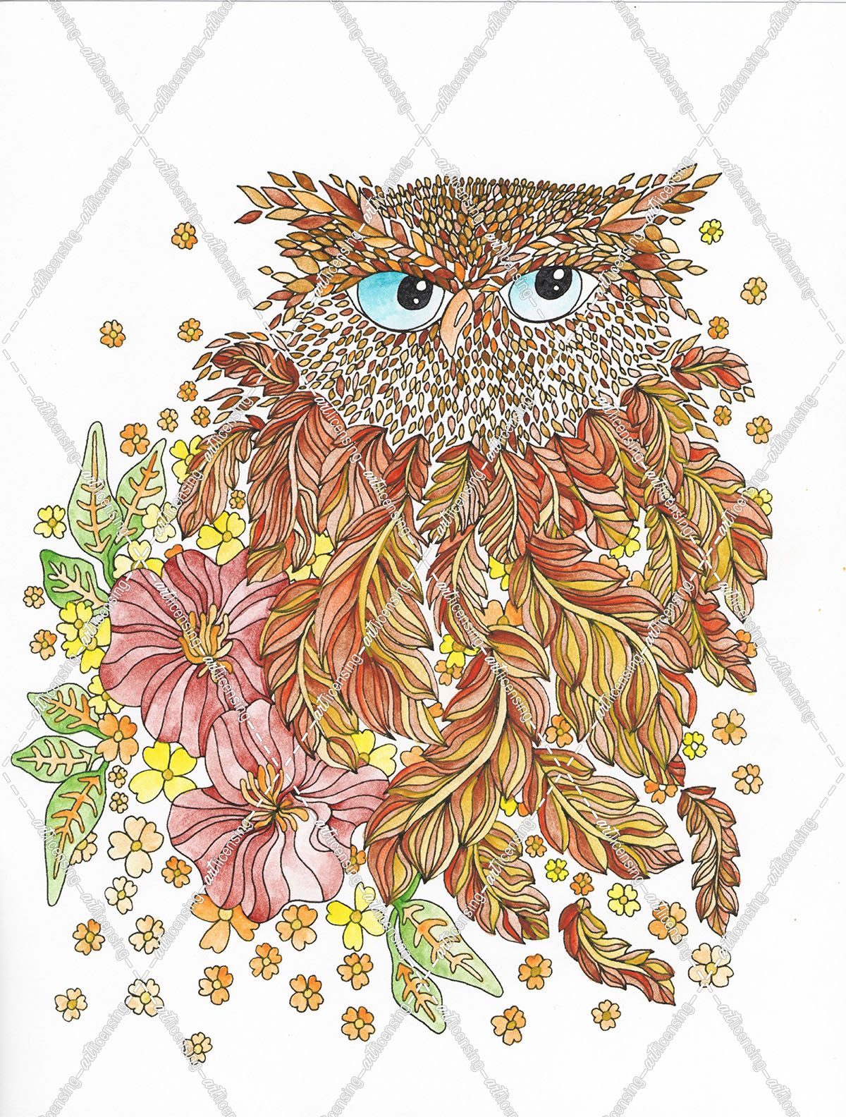 Watercolor Feathery Owl