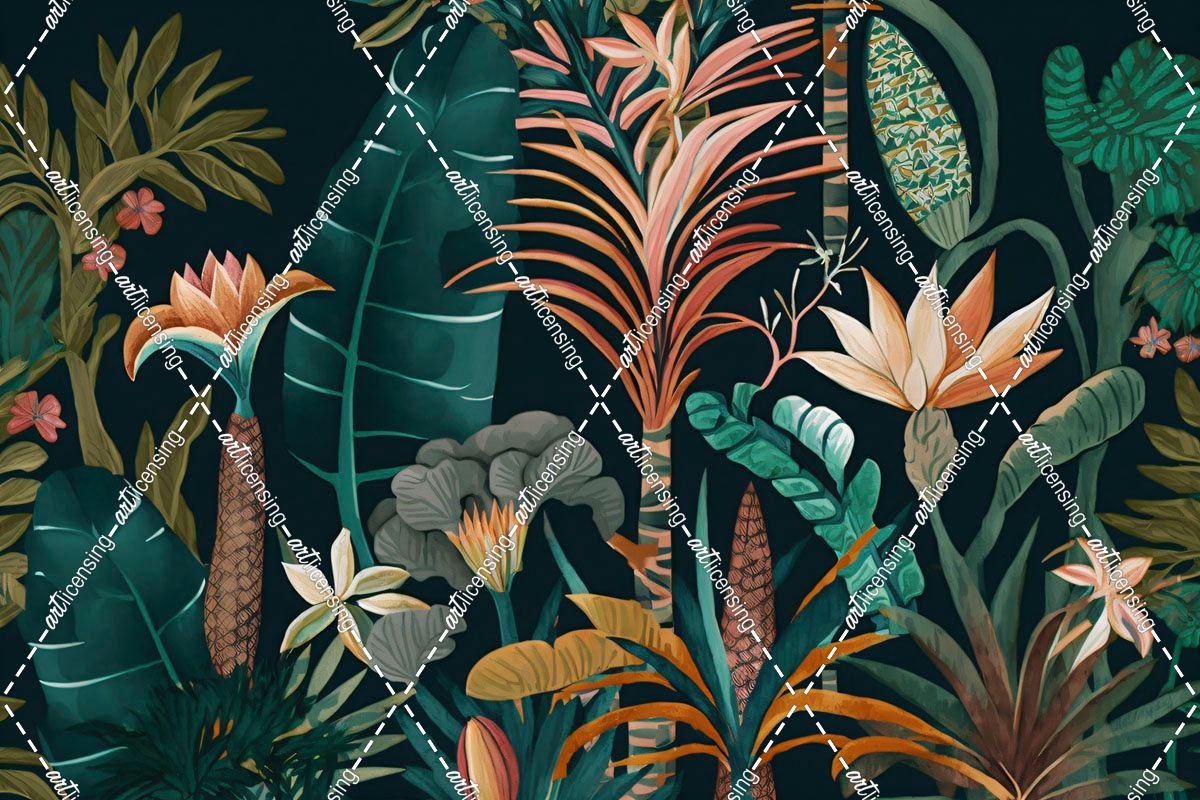 Watercolor Tropical Collage Black 1