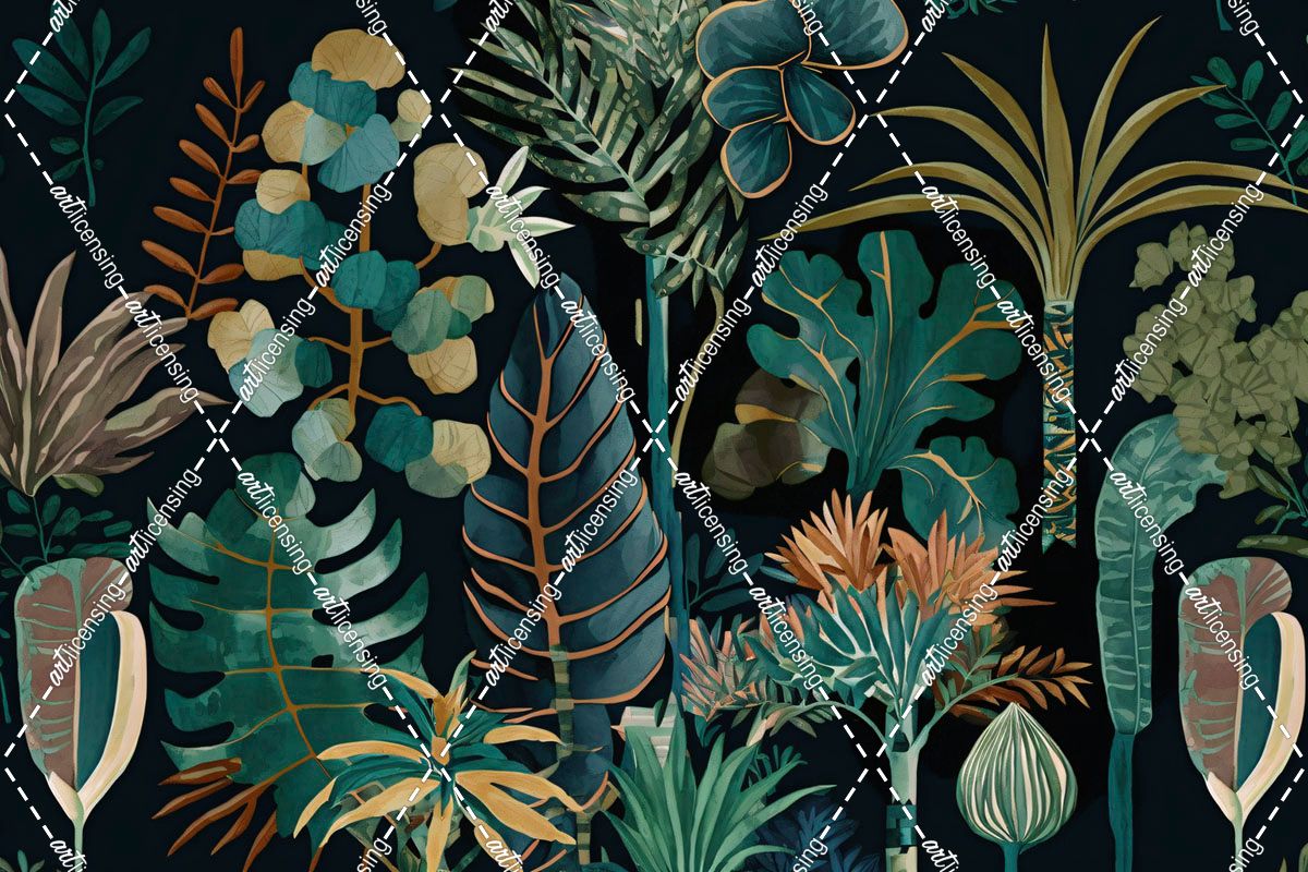 Watercolor Tropical Collage Black 4