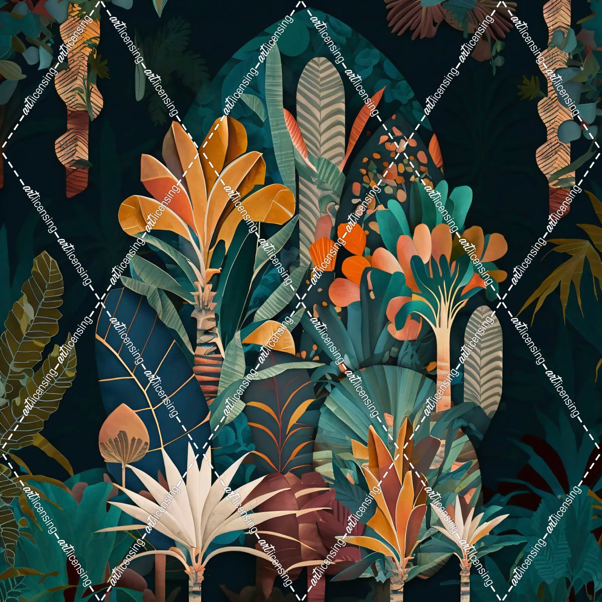Watercolor Tropical Collage Black 7