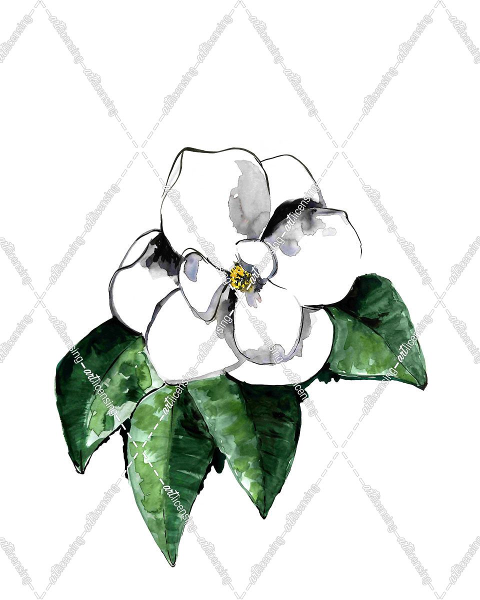 Watercolor White Magnolia