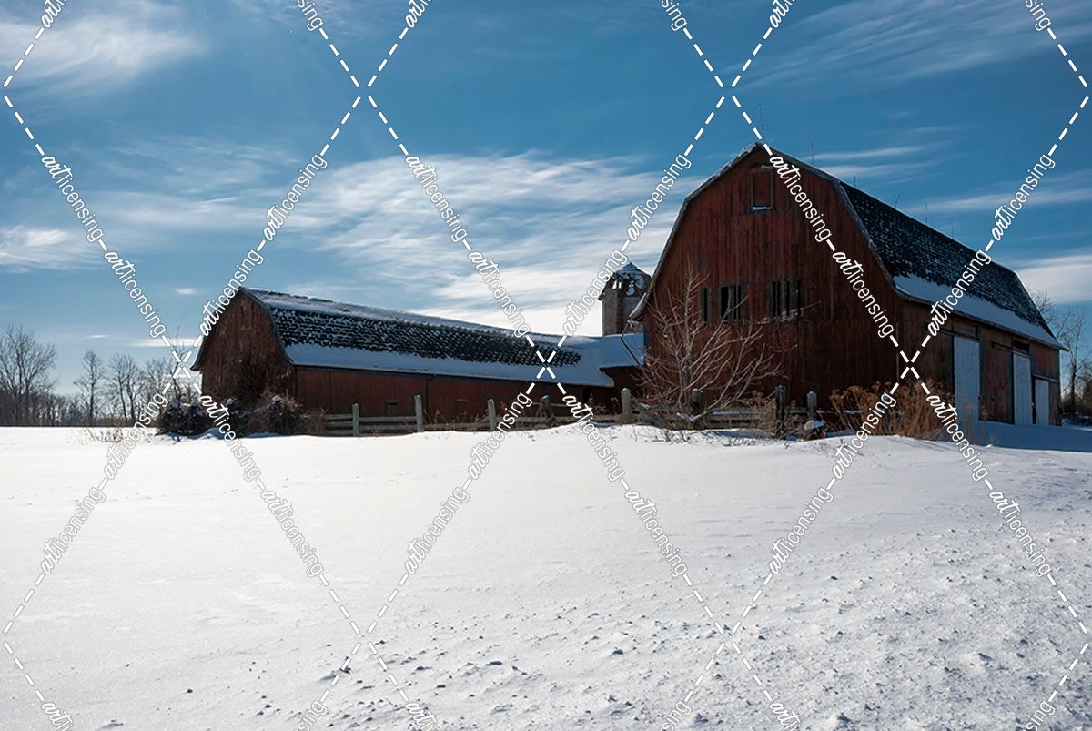 Weathered Barn In Snow Covered Field