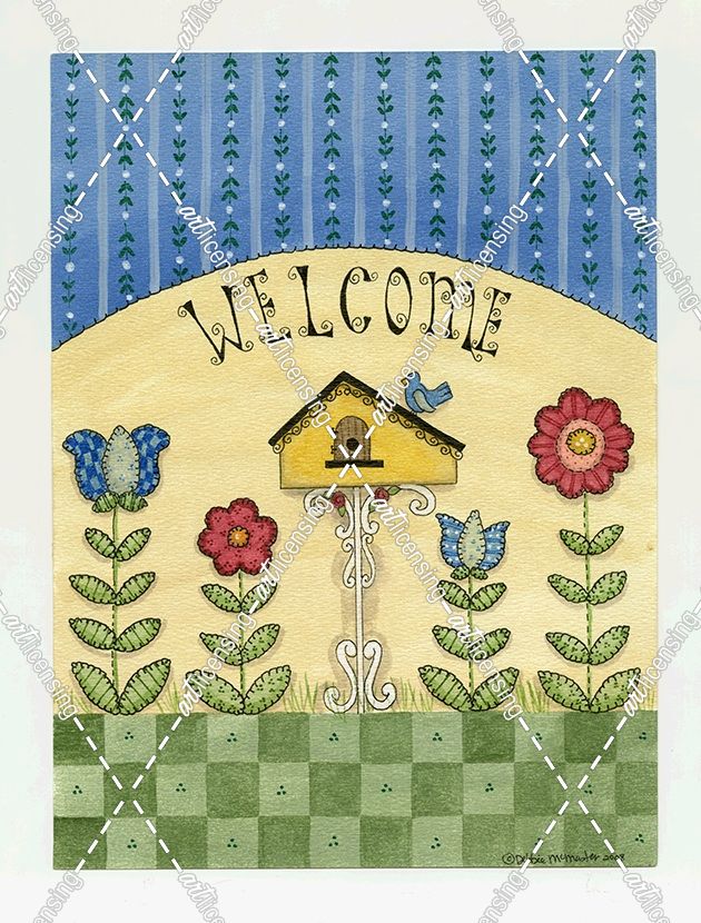 Welcome W/Flowers & Birdhouse