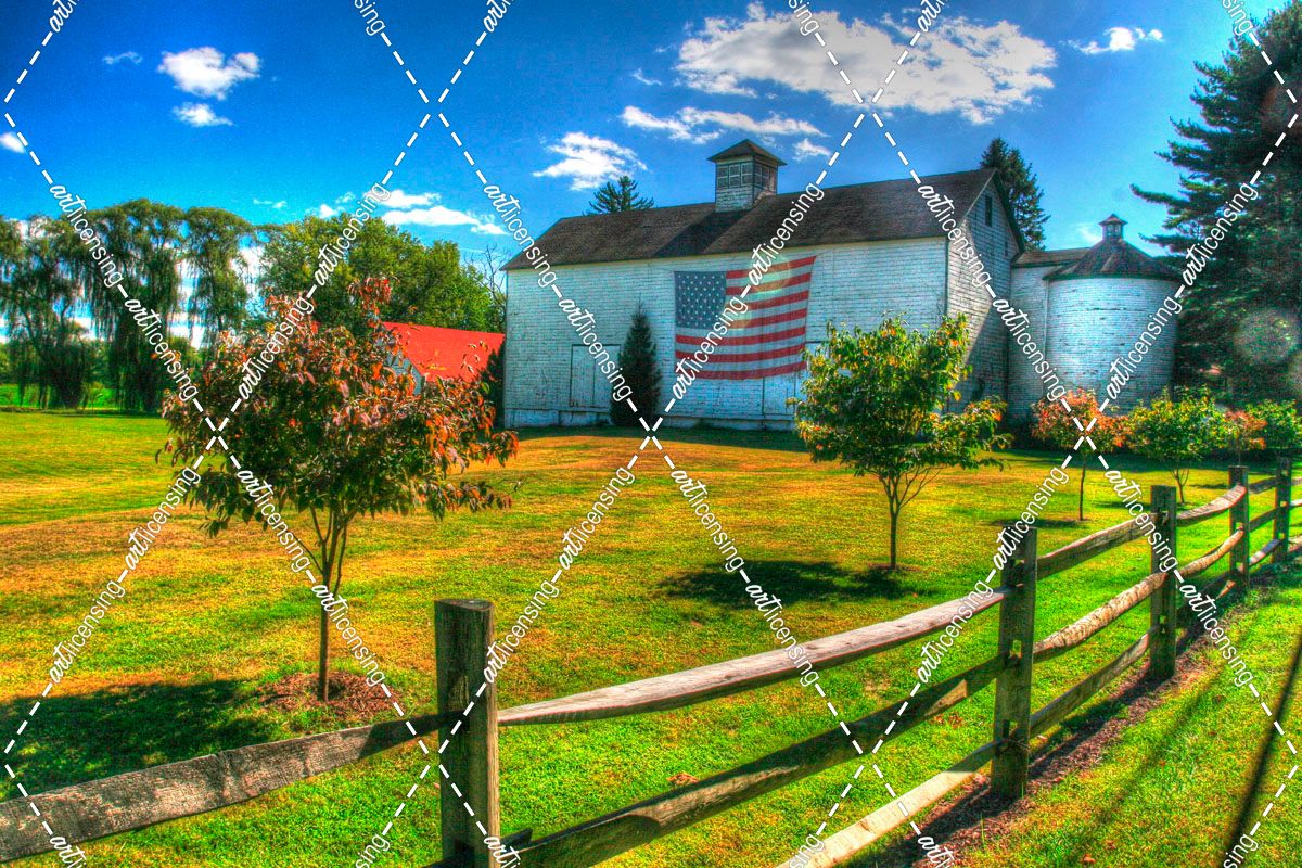 White Barn And Flag