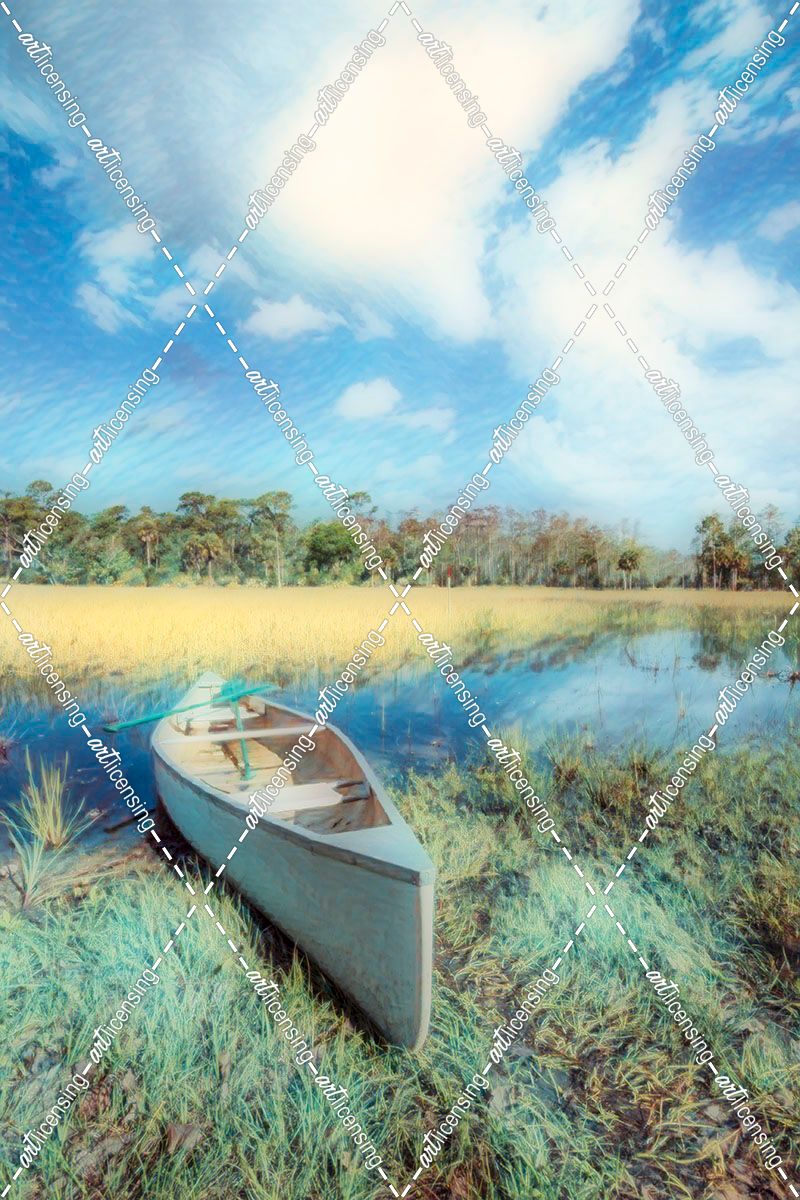White Canoe in Gentle Colors Painting