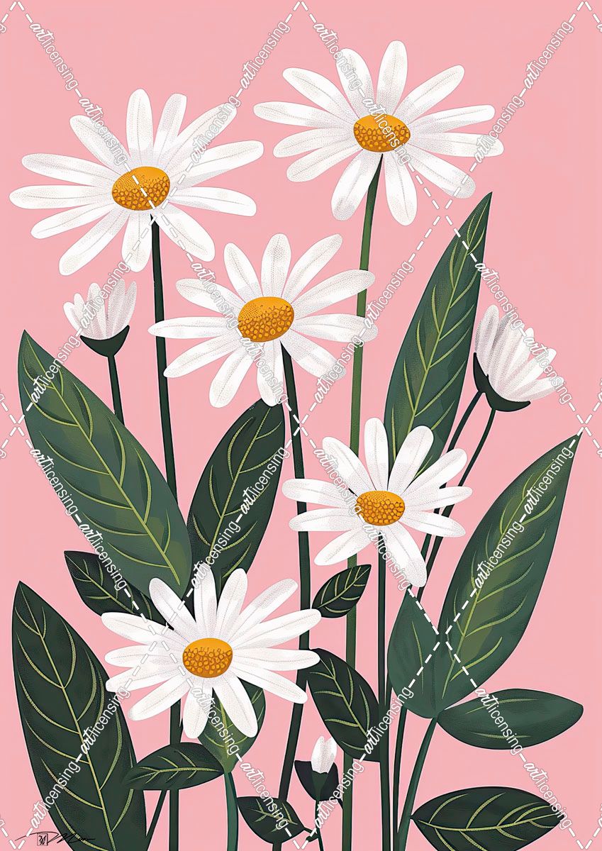White Daisies On Pink Background