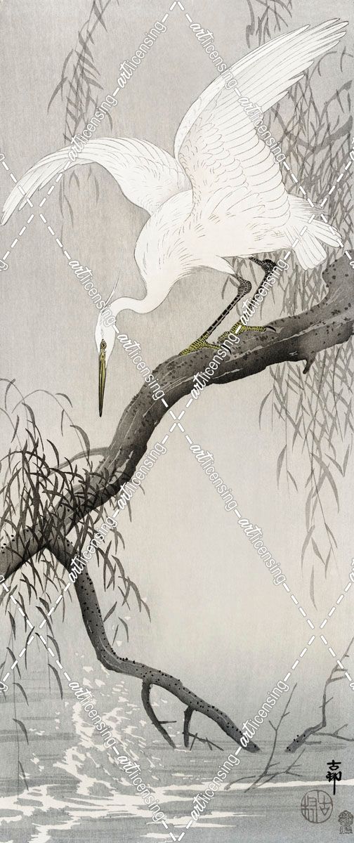 White Heron On Tree Branch – Ohara Koson