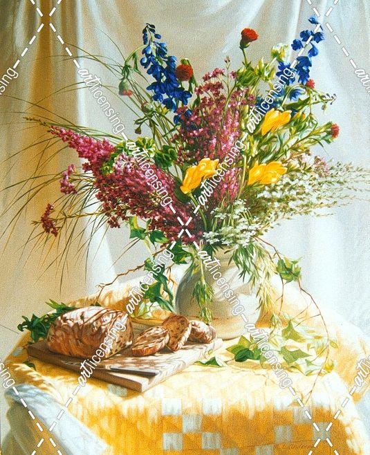 Wild Flowers And Yellow Quilt W/Bread