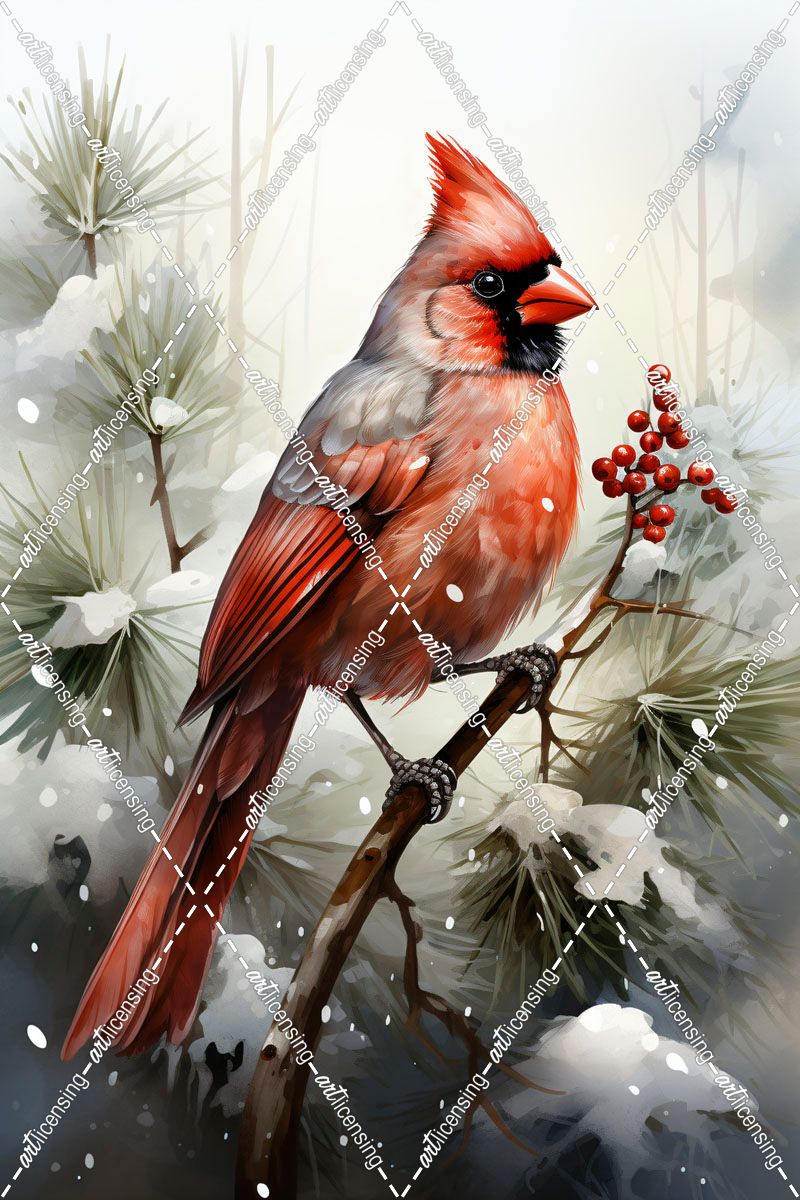 Winter Cardinal and Pine Boughs