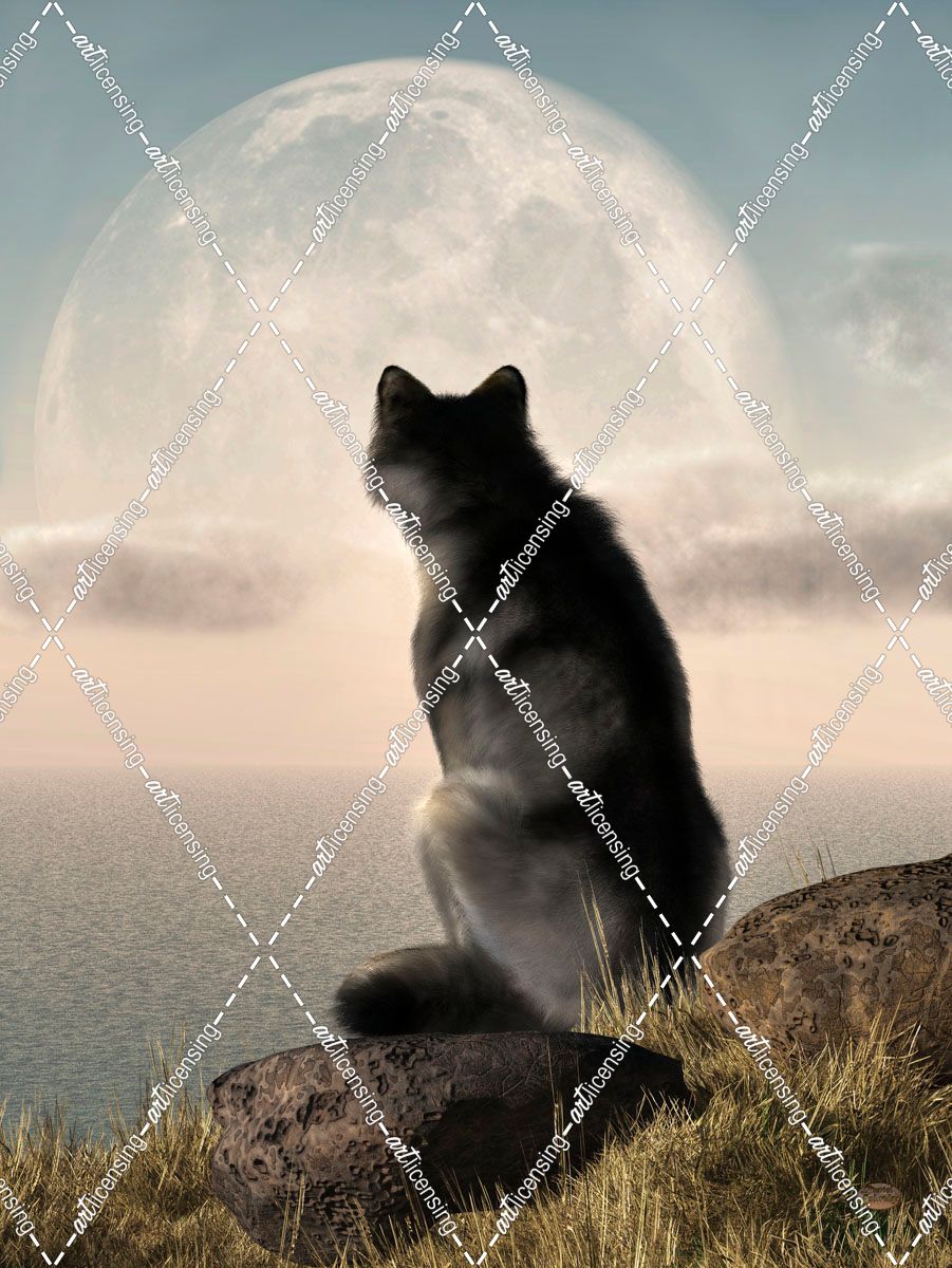 Wolf Watching The Moonrise