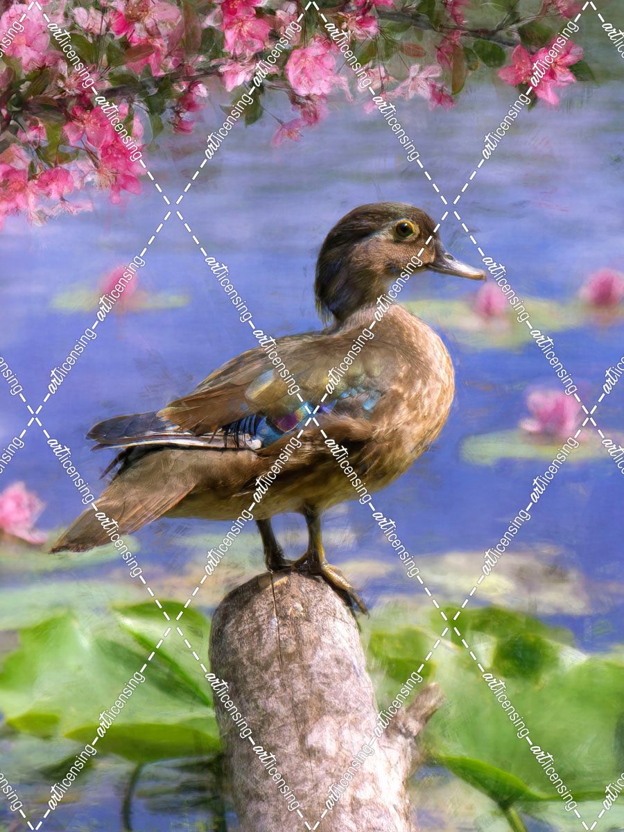 Wood Duck and Crabapple Blossoms