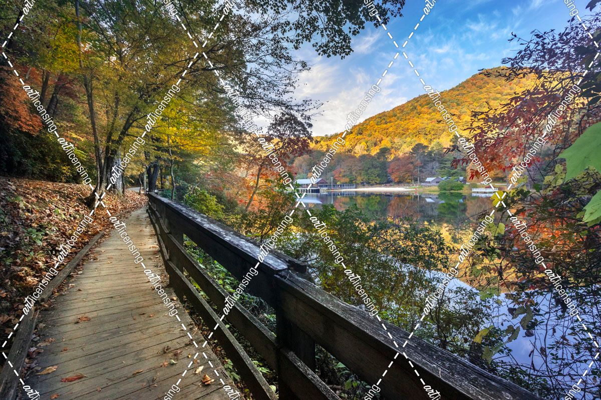 Wooden Boardwalk On The Edge Of The Lake