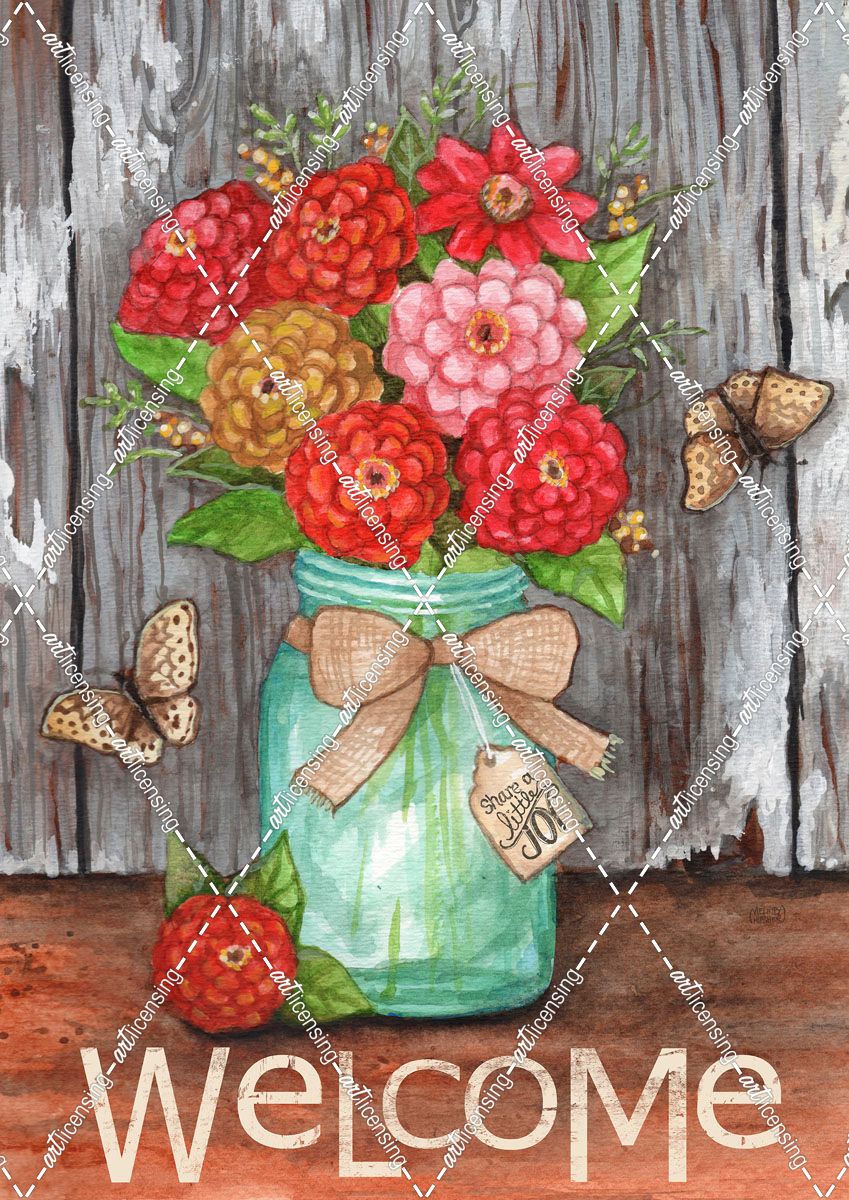 Zinnias in Jar Welcome Share joy